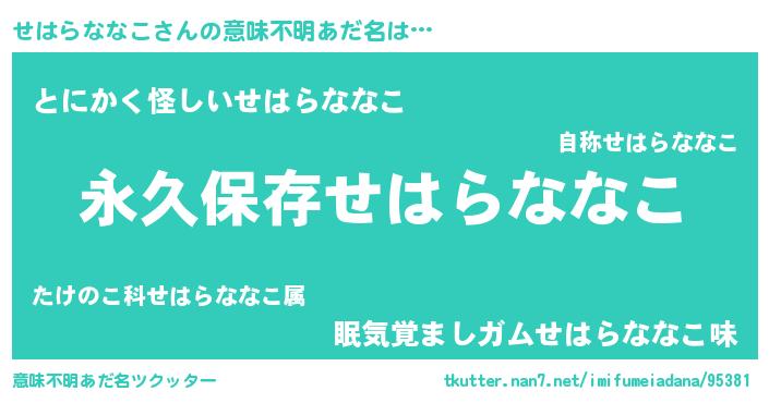 | 胡散臭い通販商品みたいなあだ名 | 『絶対に幸福をもたらす健康食品…その名も「せはらななこ」』 |