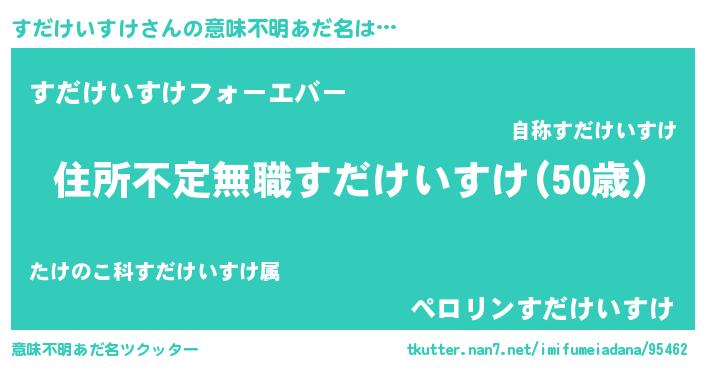 | 男性向けラノベタイトル風あだ名 | 『この素晴らしい世界にすだけいすけを!』 |