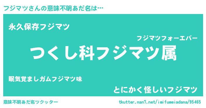 | 男性向けラノベタイトル風あだ名 | 『フジマツ~年齢イコール彼女いない歴の魔法使い~』 |