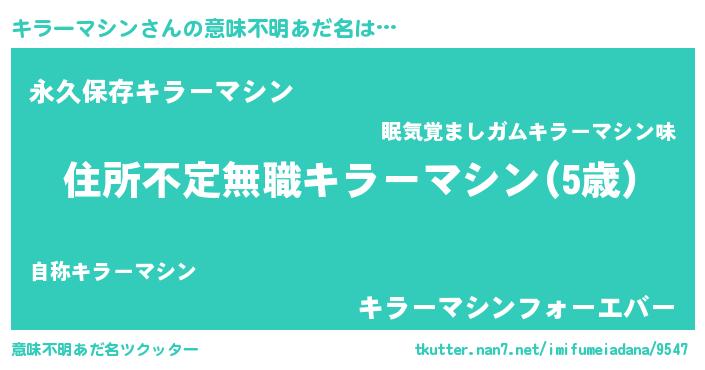 | ヘコむあだ名 | 『キラーマシン(小並感)』『なまこ酢』 |