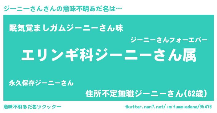 | 男性向けラノベタイトル風あだ名 | 『ジーニーサンスレイヤー』 |