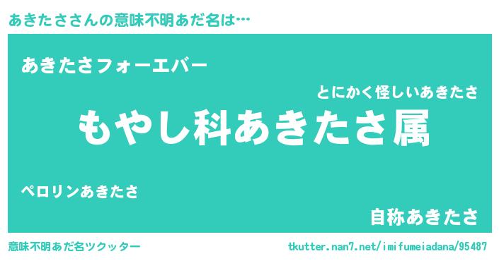 | ヘコむあだ名 | 『なまこ酢』『あき太郎』『あきにー』 |