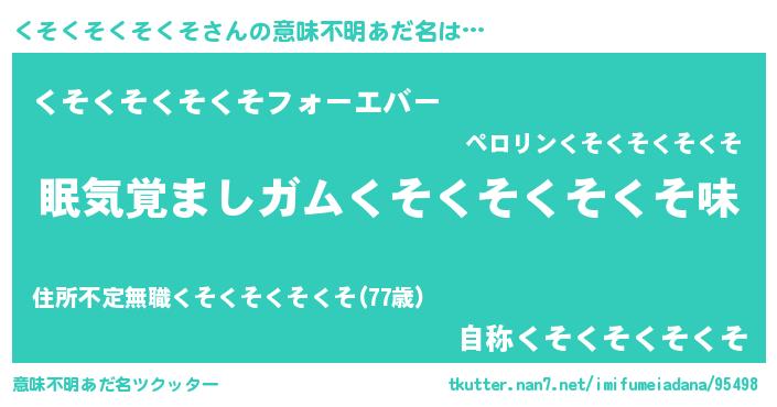 | 男性向けラノベタイトル風あだ名 | 『ノーゲーム・ノークソクソクソクソ』 |