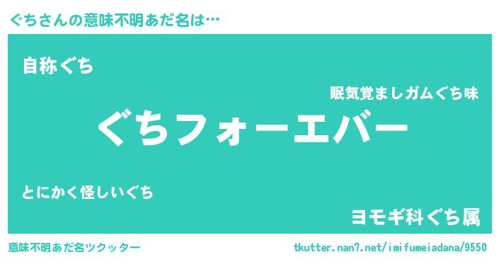 | ファンタジー風あだ名 | 『エターナルグチー』『ゼグチトゥ』 |