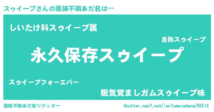 | ヒーロー風カッコイイあだ名 | 『ネオスゥイープ』『スーパースゥイープ』 |