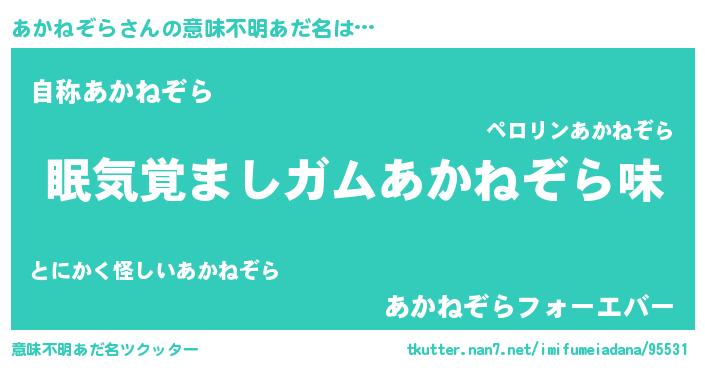| 欧米人風あだ名 | 『ダニエルあかねぞら』 |