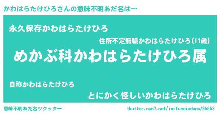 | 料理風あだ名 | 『かわはらたけひろごはん』 |