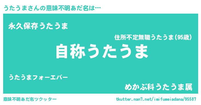 | ヘコむあだ名 | 『うたうま(苦笑)』『酢こんぶ』 |