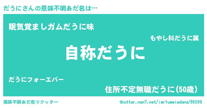 | 女子向けラノベタイトル風あだ名 | 『闇のだうに』『死神だうにの再婚』 |