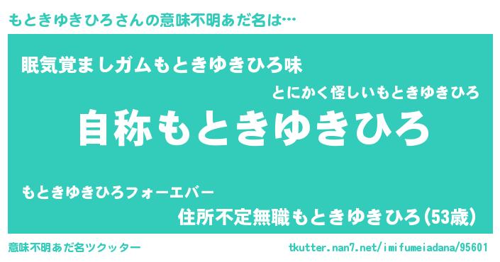 | 男性向けラノベタイトル風あだ名 | 『もときゆきひろに滅ぼされるだけの簡単なお仕事です』 |