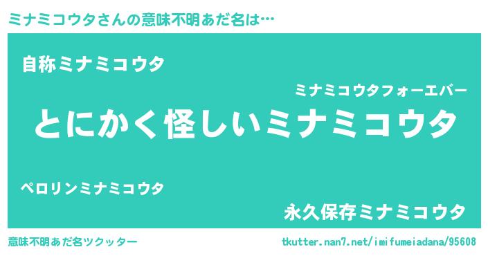 | ヘコむあだ名 | 『ミナっちょ』『ミナミコウタ(小並感)』 |