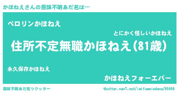 | 伝説のあだ名 | 『伝説のスナイパーかほねえ』 |