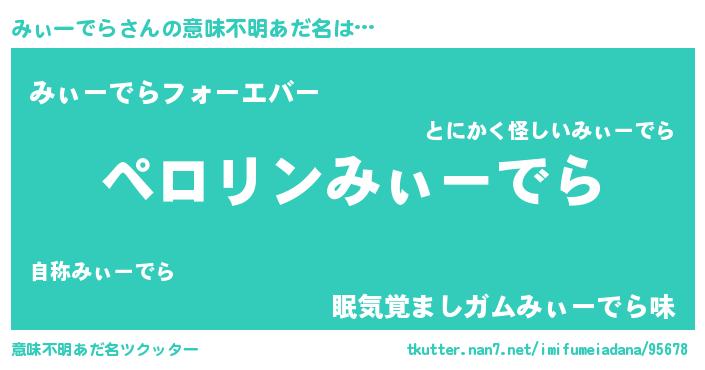 | 男性向けラノベタイトル風あだ名 | 『みぃーでらに滅ぼされるだけの簡単なお仕事です』 |