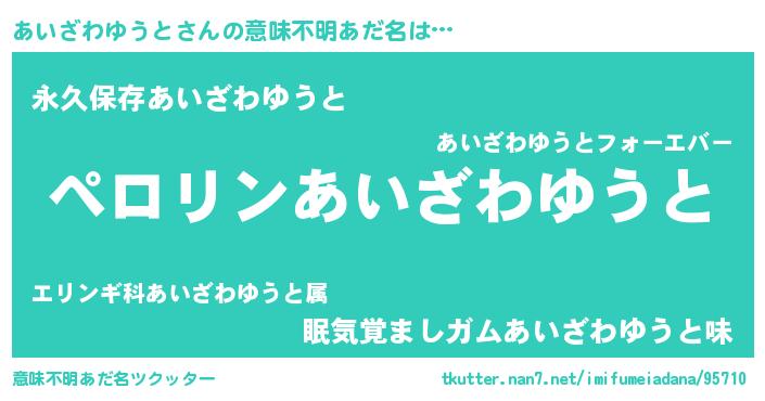 | 胡散臭い通販商品みたいなあだ名 | 『億万長者になれる霊験あらたかなお札…その名も「あいざわゆうと」』 |