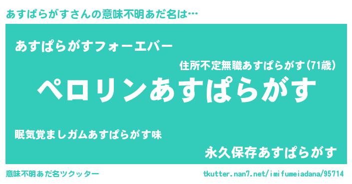 | 男性向けラノベタイトル風あだ名 | 『あすぱらがすの憂鬱』 |