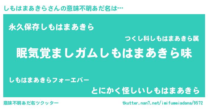 | ヘコむあだ名 | 『しもはまあきら(笑)』『しもを』 |