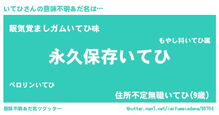 | 女子向けラノベタイトル風あだ名 | 『いてひの契約王妃』『いてひ恋絵巻』 |