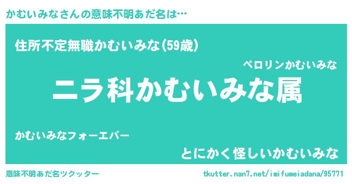 | 欧米人風あだ名 | 『トリンドルかむいみな』 |