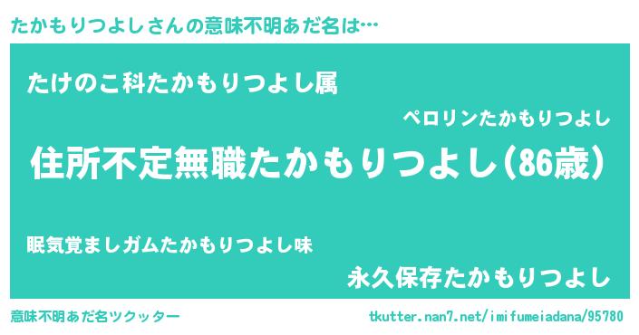 | 欧米人風あだ名 | 『ダレノガレたかもりつよし』 |