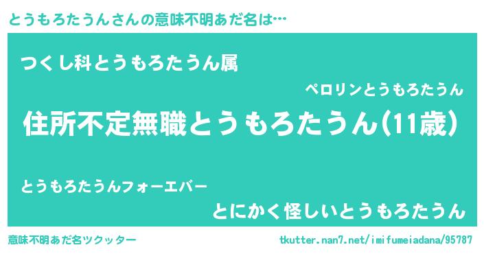 | ヘコむあだ名 | 『とうを』『とうもー』『なまこ酢』 |