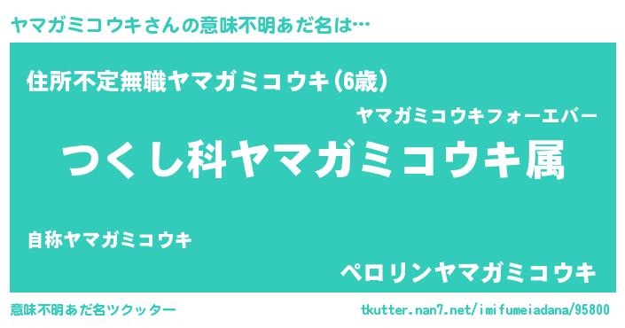 | 男性向けラノベタイトル風あだ名 | 『ヤマガミコウキ~年齢イコール彼女いない歴の魔法使い~』 |