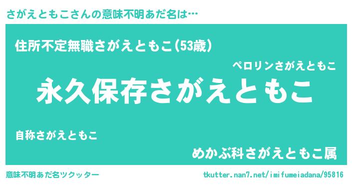 | 男性向けラノベタイトル風あだ名 | 『さがえともこという概念が存在しない退屈な世界 』 |