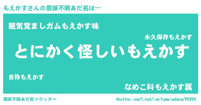 | 女子向けラノベタイトル風あだ名 | 『もえかすは平凡を望む』 |