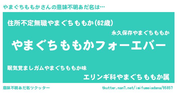 | 欧米人風あだ名 | 『やまぐちももかクリステル』 |