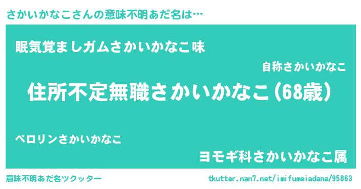 | 伝説のあだ名 | 『救世主となる占い師さかいかなこ』 |