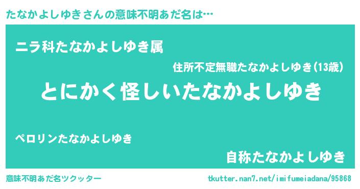 | 女子向けラノベタイトル風あだ名 | 『たなかよしゆきの卵を拾いまして』 |
