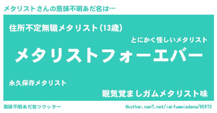 | 女子向けラノベタイトル風あだ名 | 『メタリストの婚約者』 |