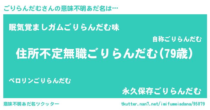 | ヘコむあだ名 | 『ごりらんだむ(震え声)』『ごりっふぃ~』 |