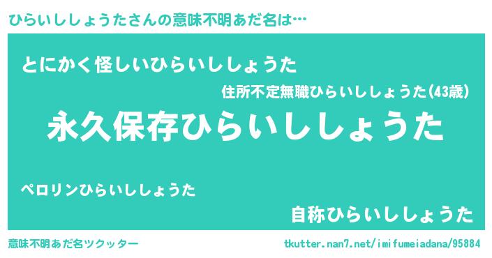 | ヘコむあだ名 | 『ひらいししょうた(震え声)』『ひらを』 |