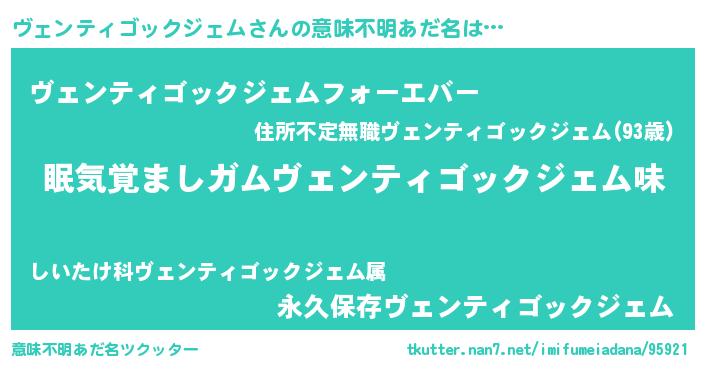 | ヒーロー風カッコイイあだ名 | 『正義の使者ヴェンティゴックジェム』 |