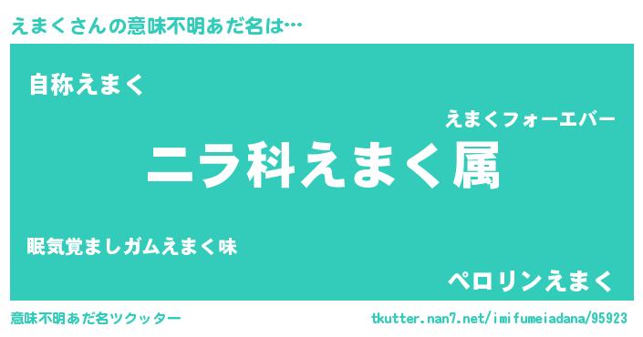 | 男性向けラノベタイトル風あだ名 | 『えまく~年齢イコール彼女いない歴の魔法使い~』 |