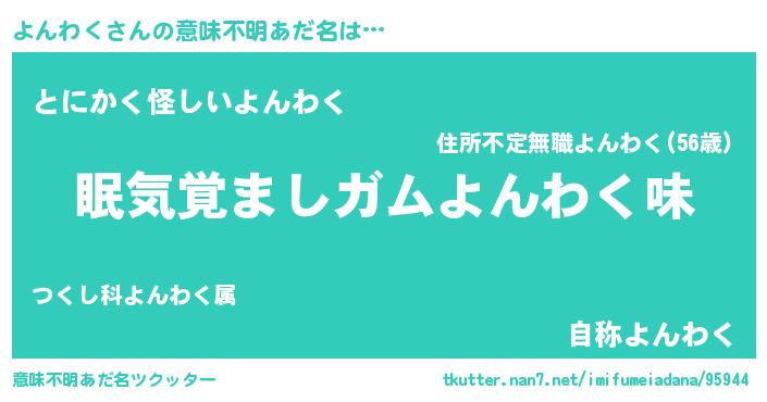 | 欧米人風あだ名 | 『ダニエルよんわく』『ウサインよんわく』 |