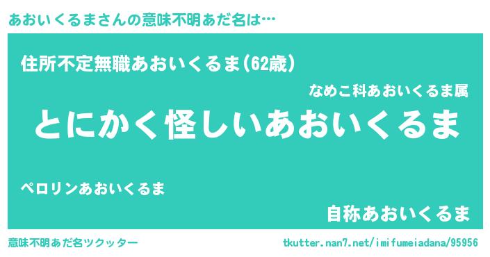 | ポケモン風あだ名 | 『ヒアオイクルマ』『アーオイ』 |