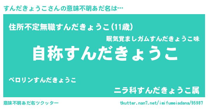 | 女子向けラノベタイトル風あだ名 | 『すんだきょうこストレイドッグス』 |