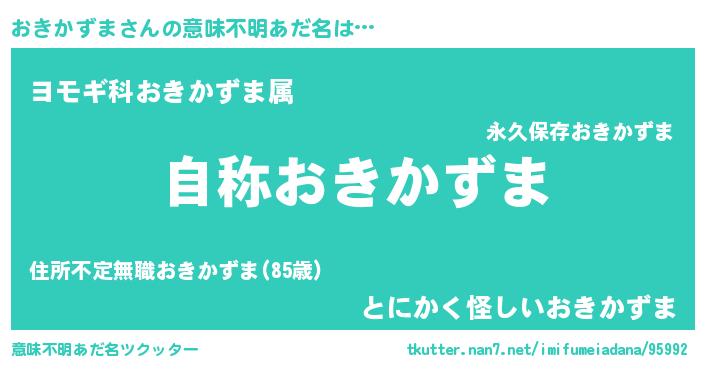 | 欧米人風あだ名 | 『おきかずま・ステッグマイヤー』 |