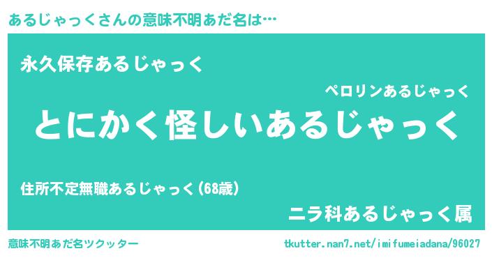 | 男性向けラノベタイトル風あだ名 | 『あるじゃっくの嫁は女の子じゃないと思った?』 |