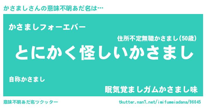 | 男性向けラノベタイトル風あだ名 | 『緋弾のカサマシ』 |
