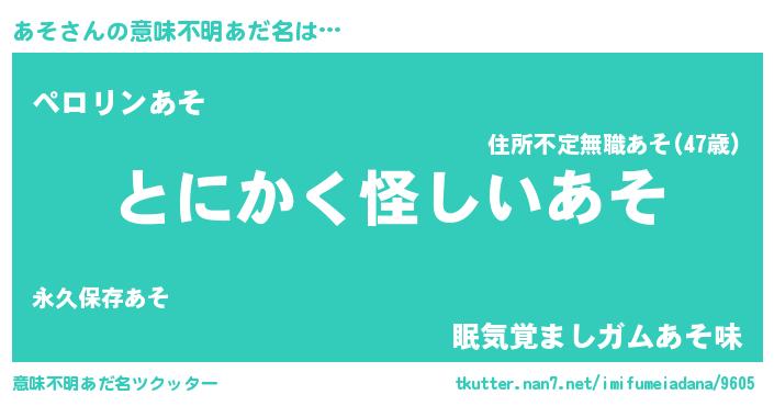 女子向けラノベタイトル風あだ名 | 『あそ様がみてる』『死神あその再婚』 |