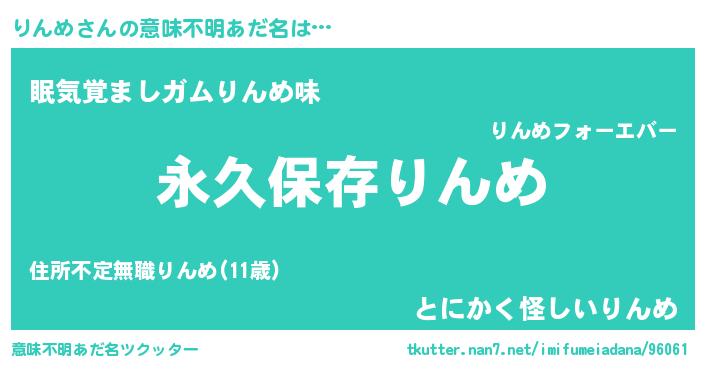 | 男性向けラノベタイトル風あだ名 | 『りんめという概念が存在しない退屈な世界 』 |