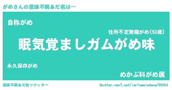 | 女子向けラノベタイトル風あだ名 | 『がめ恋絵巻』『がめストレイドッグス』 |