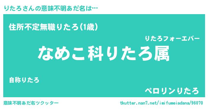 | 男性向けラノベタイトル風あだ名 | 『転生したらりたろだった件』 |