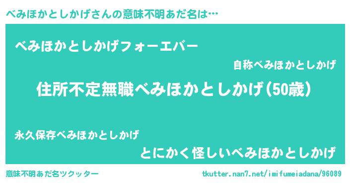 | 欧米人風あだ名 | 『べみほかとしかげ・ステッグマイヤー』 |