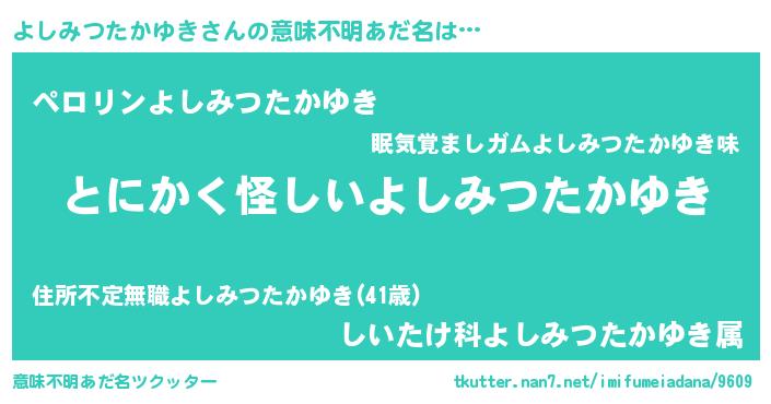 | 男性向けラノベタイトル風あだ名 | 『ダンジョンによしみつたかゆきを求めるのは間違っているだろうか』 |