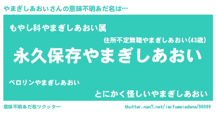 | ヒーロー風カッコイイあだ名 | 『ネオヤマギシアオイ』『幻影騎士ヤマ』 |