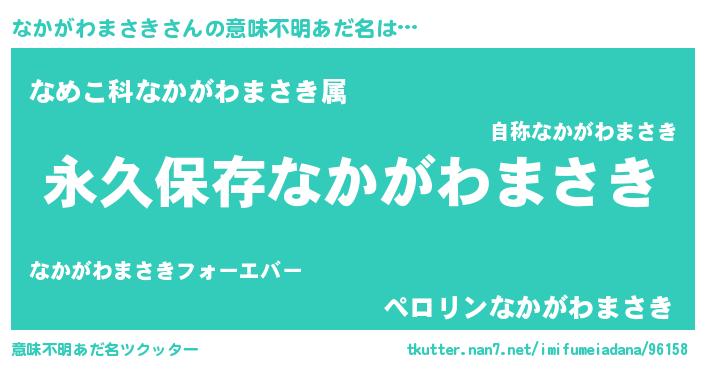 | 男性向けラノベタイトル風あだ名 | 『なかがわまさきという概念が存在しない退屈な世界 』 |