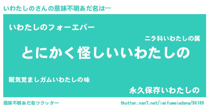 | 男性向けラノベタイトル風あだ名 | 『いわたしのの嫁は女の子じゃないと思った?』 |